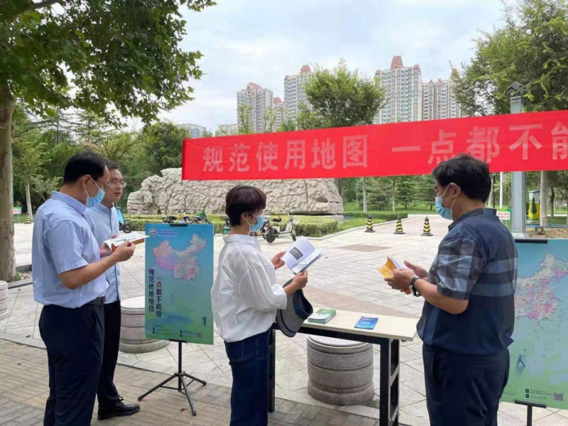 活动现场志愿者们搭起展台、挂起横幅,摆起展板,为来往市民发放各类宣传材料,并为市民普及国家版图和测绘政策法规知识,介绍地理信息与百姓日常生活的联系。让市民群众一起走进测绘,了解国家版图,倡导规范使用标准地图,共同守护美丽中国。